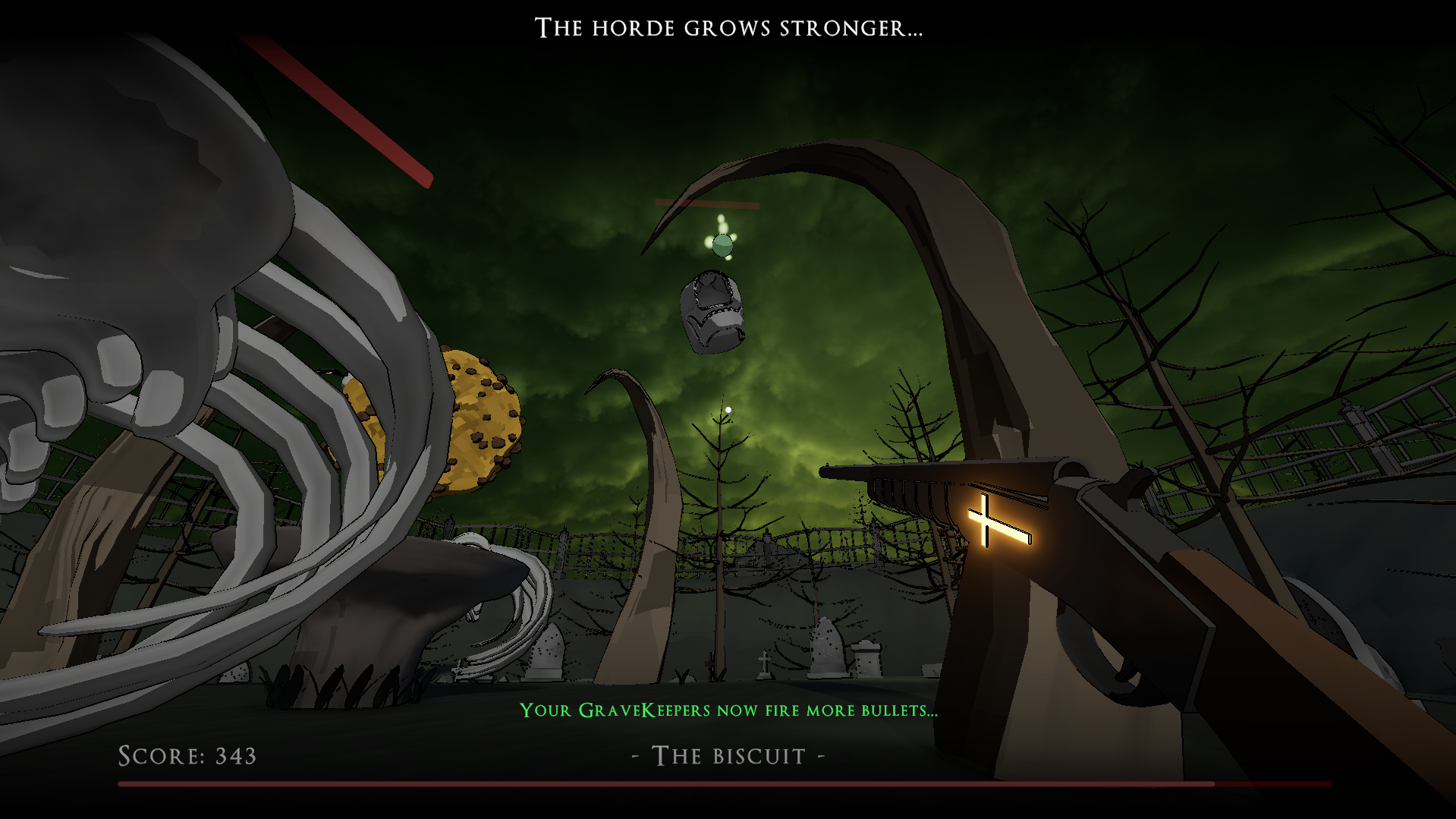 Crumb to Dust is a roguelike horde shooter built for a game jam. With the theme being "risk it for the biscuit", I decided to lean into the absurd and have Players fight off escalating waves of undead to protect your biscuit - and between each wave, face a choice that defines the run.